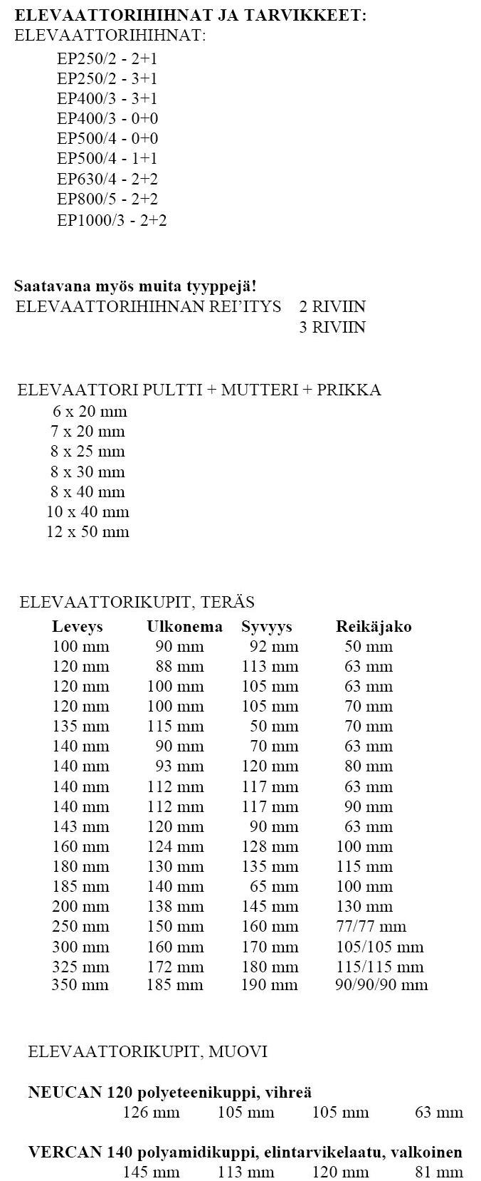 Kirjoita arvioLaaja valikoima elevaattorihihnoja ja tarveikkeita.
