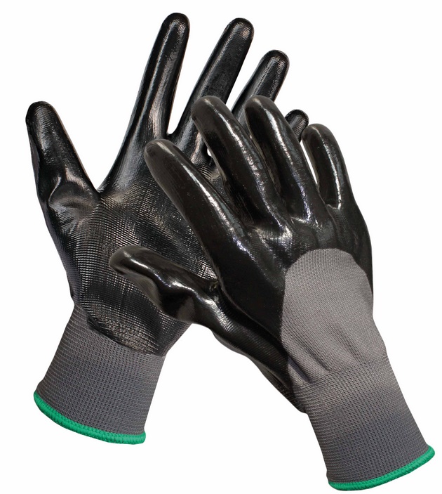 - Sormet ja kämmen (3/4) dipattu mustalla nitriilillä