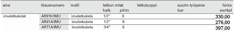 Valitse listasta haluamasi letkukela.