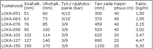 Loka on poimupintainen, hyvin kulutusta kestävä, terässpiraalivahvisteinen letku.