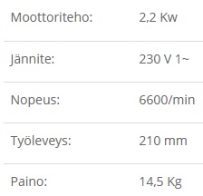 Työleveys 210mm.