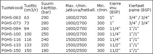 - Ilmoitetut paineet voidaan hetkellisesti ylittää max. 8% / 6 sec.