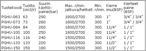 - Ilmoitetut paineet voidaan hetkellisesti ylittää max. 8% / 6 sec.