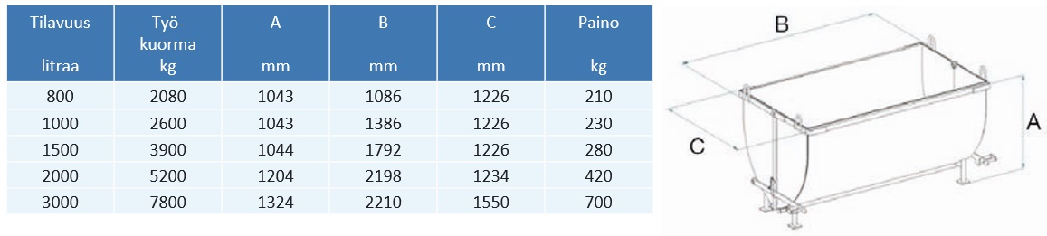 Soveltuu esim. jätteiden, mullan ja kiviainesten siirtoon ja tyhjennykseen.