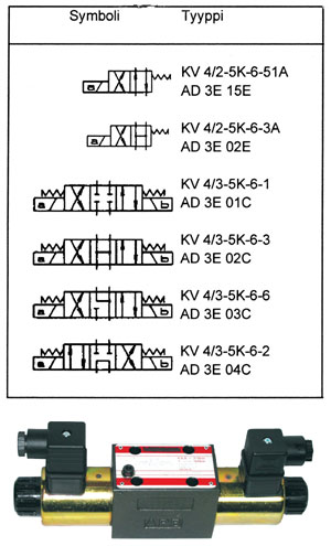 Sähköinen 4/2- tai 4/3-suuntaventtiili.