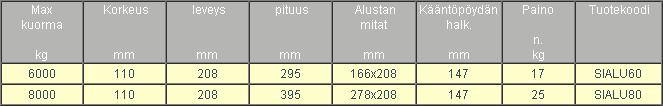Siirtoalustat 6000/8000kg, alk