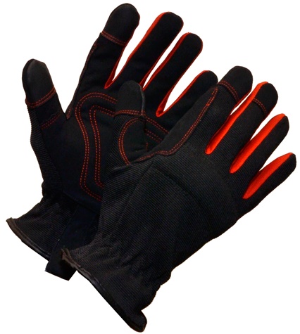 Väri: musta. Punaiset kontrastitikkaukset ja yksityiskohdat tuovat käsineeseen näyttävyyttä ja näkyvyyttä.