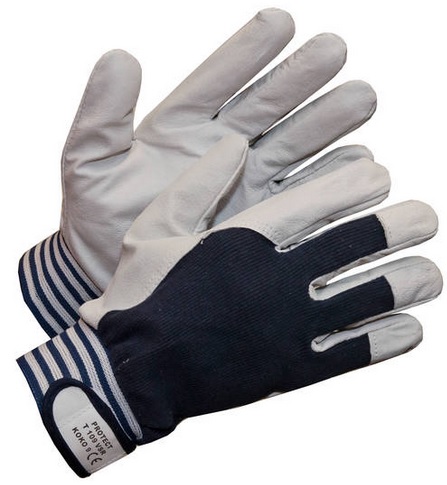Työsormikas, vuohennahka/puuvilla, tarraranneke, 240pr/pkt