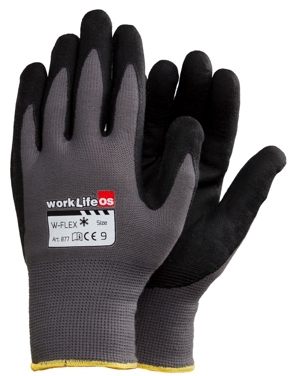 Kestävä saumaton nitriilifoam talvityökäsine, jota on erittäin miellyttävä pitää kädessä